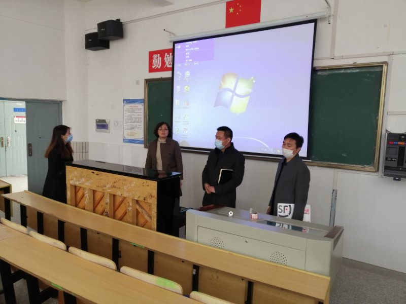 2020年4月15日上午,校党委委员、副校长崔霞带领教务处林琳处长、信息技术中心秦立山主任、后勤处叶兵科长等一行检查开学准备工作,上午9:30来到信息技术中心,查看了教学计算机房、多功能教室检查各项开学准备工作,就开学前教学设备检测维护情况、机房消杀等作详细了解。