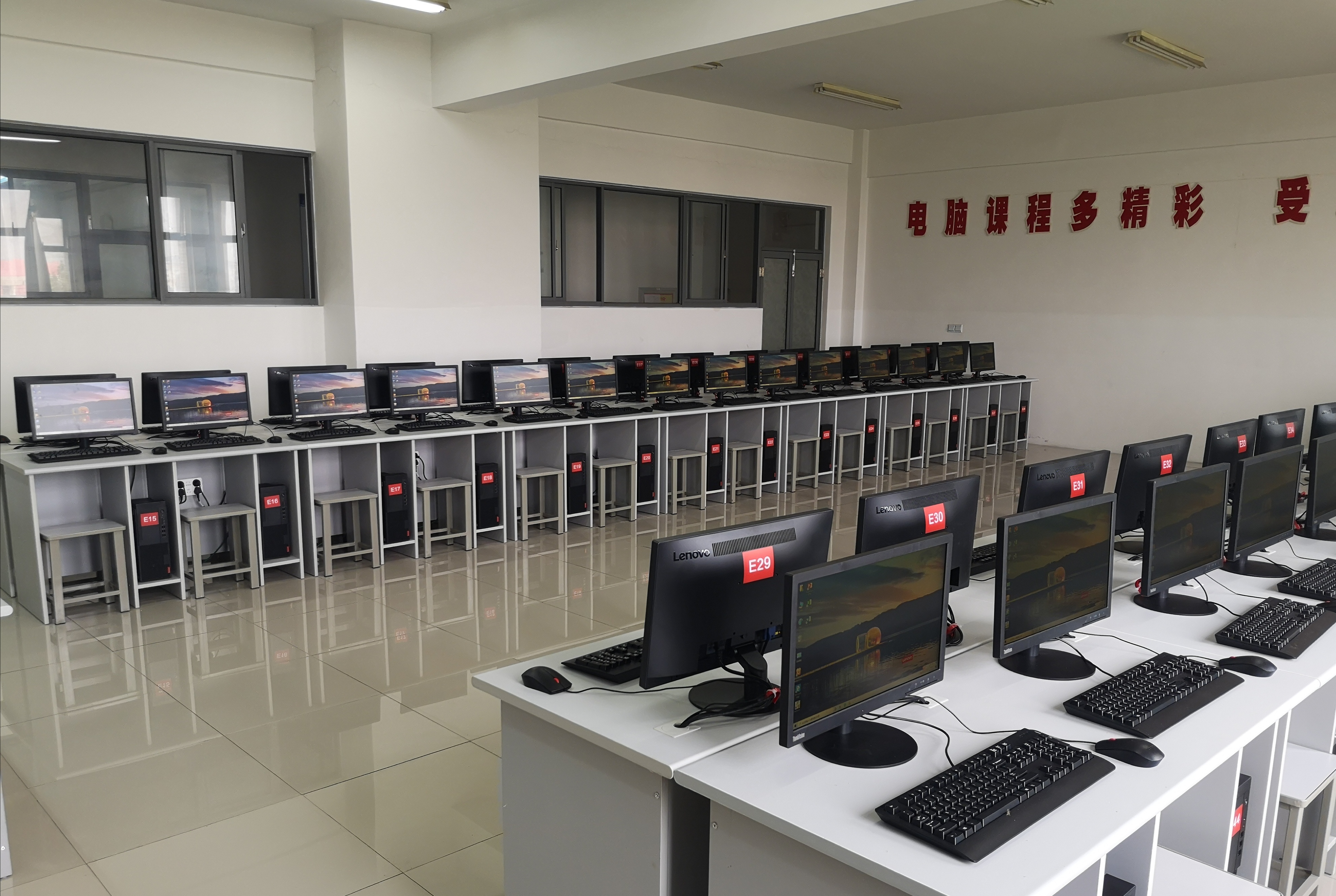 2020年7月17日上午,校党委委员、副校长崔霞带领后勤处陈红处长、安保处谢福华处长和陈伟山副处长、教务处朱志强副处长、信息技术中心秦立山主任一行检查2020年中考阅卷准备工作,上午9:00到科技楼查看了网上阅卷用计算机房,检查了阅卷计算机和网络设备检测维护、机房消杀、环境布置等准备工作。