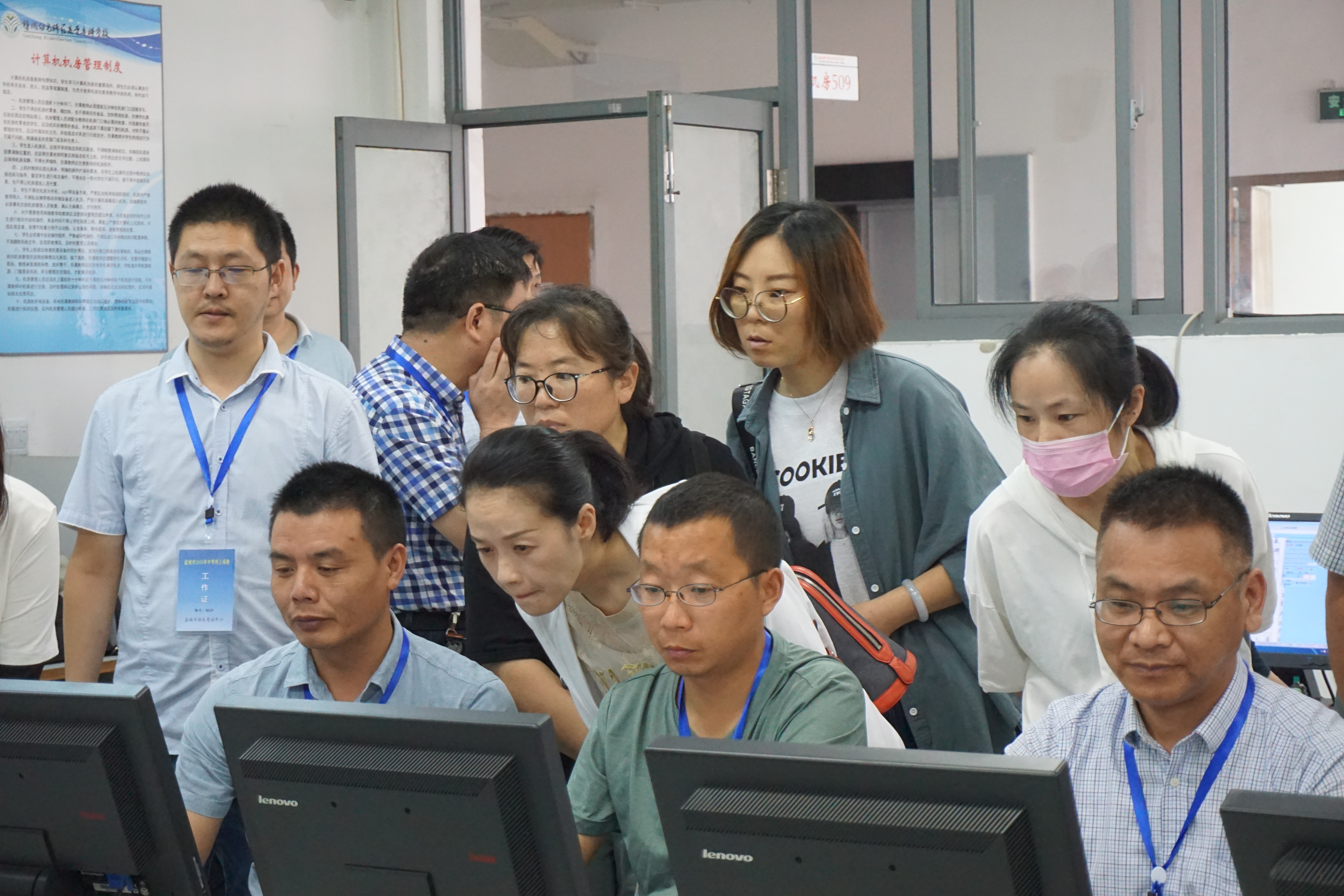 2019年7月18日至24日,盐城市中考网上阅卷工作在我校北校区机房举行,本次阅卷信息技术中心共准备了12个阅卷机房和1 个监控机房,共620台计算机投入到阅卷工作。在阅卷期间,部分政协委员、家长代表和媒体进入现场督察,听取阅卷工作汇报,并实地考察各科目阅卷机房、阅卷管理中心机房和阅卷监控室了解中考阅卷实情,对我校组织的本次中考阅卷服务工作给予赞许。