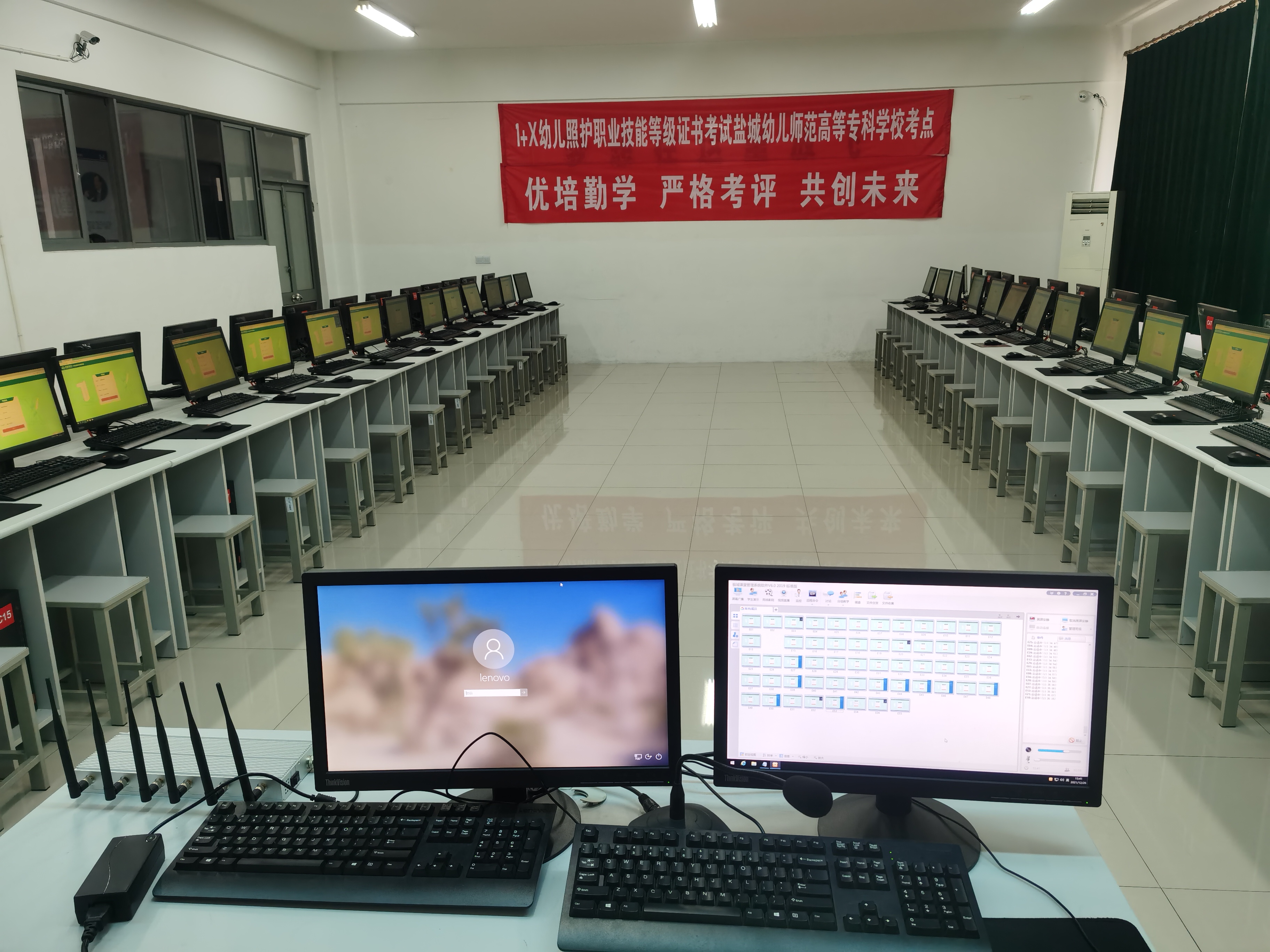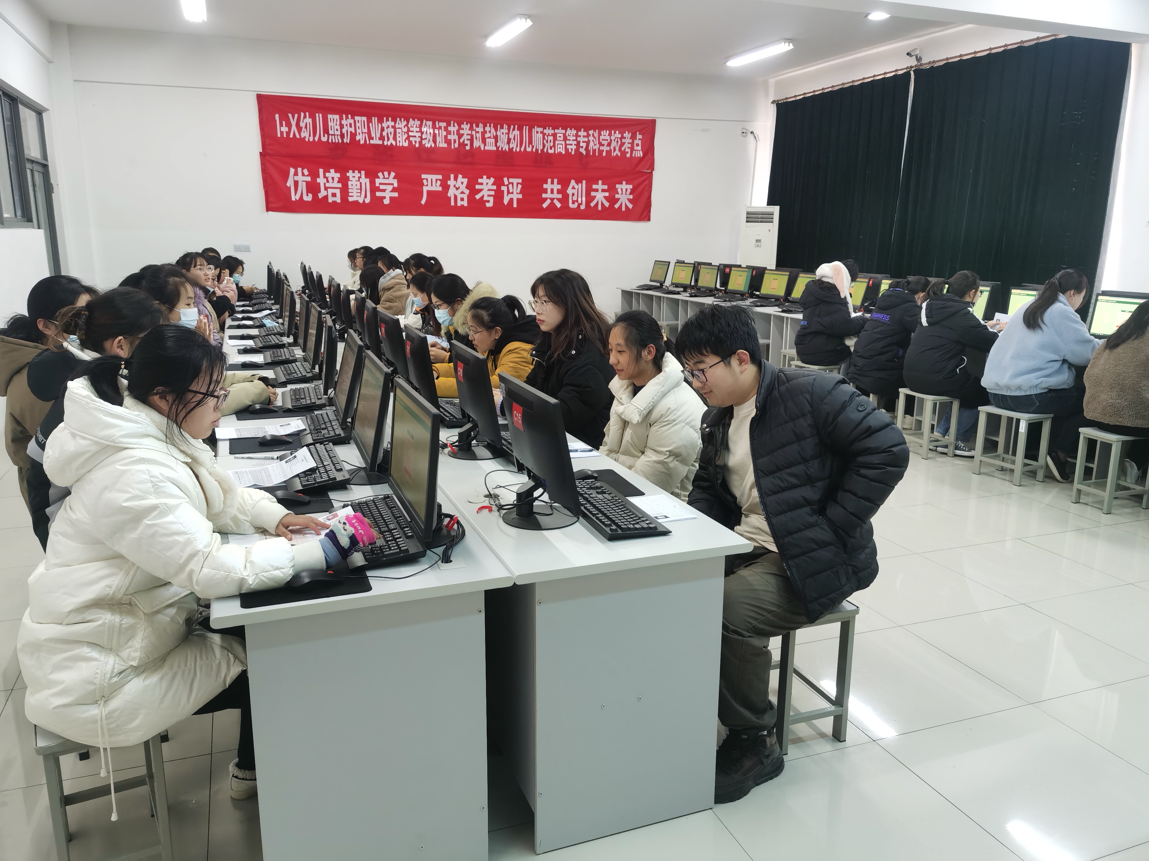 2021年12月26日,“1+X”幼儿照护职业技能等级证书考级理论考试(机考)工作在科技楼五楼机房举行,为做好此次考试服务工作,信息技术中心提前和学前教育学院对接,按照国家职业技能等级考试要求布置好考场。此前,为进一步做好相关服务工作,信息技术中心还安排专人参加国家“1+X”职业技能等级考试工作培训。经过周密安排,细化考区布置,信息技术中心协助学前一分部圆满完成1+X幼儿照护职业技能等级考试服务工作。(图:朱传华 文:葛明星 审核:秦立山)